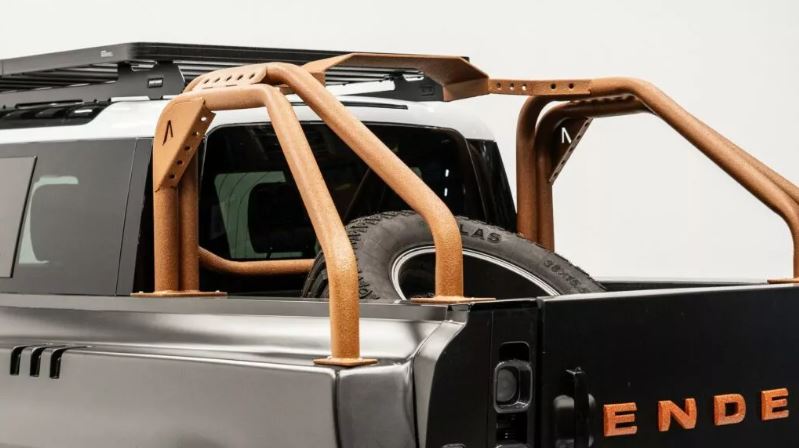 Ngoại thất của xe cũng được cải tiến đáng kể với vòm bánh xe mở rộng, tấm bảo vệ gầm, bậc thềm bên hông và thanh trượt đá. Phía trước xe được gắn thêm thanh cản màu cam nổi bật. Đèn LED chiếu sáng được lắp trên nóc xe cùng với giá đỡ, trong khi phía sau xe có thanh thể thao và một bánh xe dự phòng cỡ lớn đặt trong thùng xe.