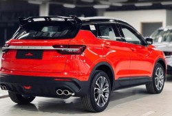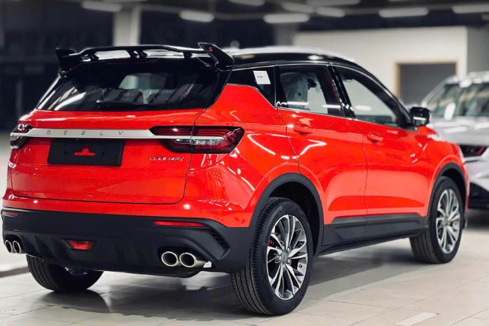 Chiếc Coolray màu đỏ có thiết kế thể thao hơn, thuộc phiên bản cao cấp với các chi tiết nổi bật như cánh gió lớn, bộ mâm phay hai tông màu kích thước 18 inch và phối màu ngoại thất theo phong cách thể thao.