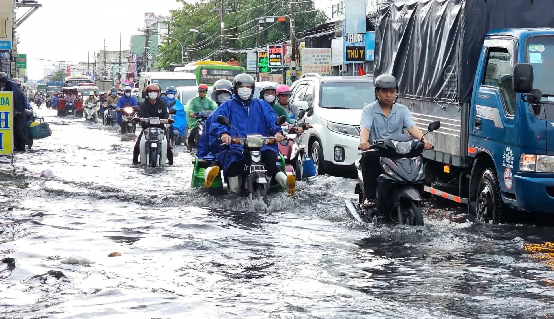 Trường hợp buộc phải di chuyển qua đoạn đường ngập, hãy giữ ga đều, đi chậm và tránh tạo sóng nước lớn, đặc biệt không nên phanh gấp hoặc tăng tốc đột ngột. Việc nước tràn qua lưới tản nhiệt hoặc ống hút gió có thể khiến động cơ ngưng hoạt động ngay lập tức.
