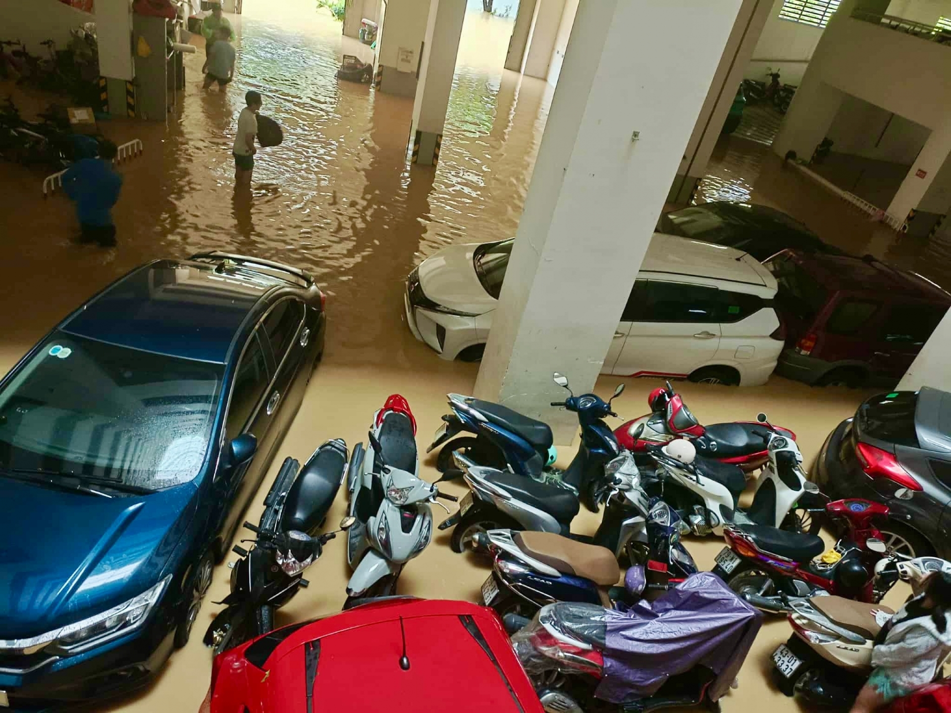 Người dân sống quanh khu vực cho biết nước lên quá nhanh vào rạng sáng, khiến họ không kịp đưa phương tiện đến nơi cao ráo. Những hình ảnh chia sẻ trên mạng xã hội cho thấy cảnh tượng nhiều ô tô nằm im trong dòng nước cuồn cuộn, mang theo nỗi lo thiệt hại nặng nề về tài sản.