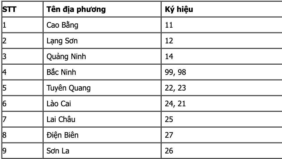 Ví dụ, tỉnh Bắc Ninh sau sáp nhập sẽ có cả biển số 99 (Bắc Ninh cũ) và 98 (của Bắc Giang trước đây). Tỉnh Hưng Yên sẽ bao gồm cả biển số 89 và 17 (của Thái Bình). Phú Thọ có thể sử dụng đến ba biển số: 19, 28 và 88 - đại diện cho các khu vực trước khi sáp nhập gồm Phú Thọ, Hòa Bình và Vĩnh Phúc.