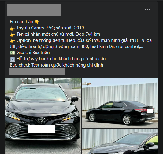 Theo thông tin từ một showroom chuyên kinh doanh xe cũ, một chiếc Toyota Camry đời 2019 đang được chào bán với giá khoảng tầm 8xx triệu đồng.