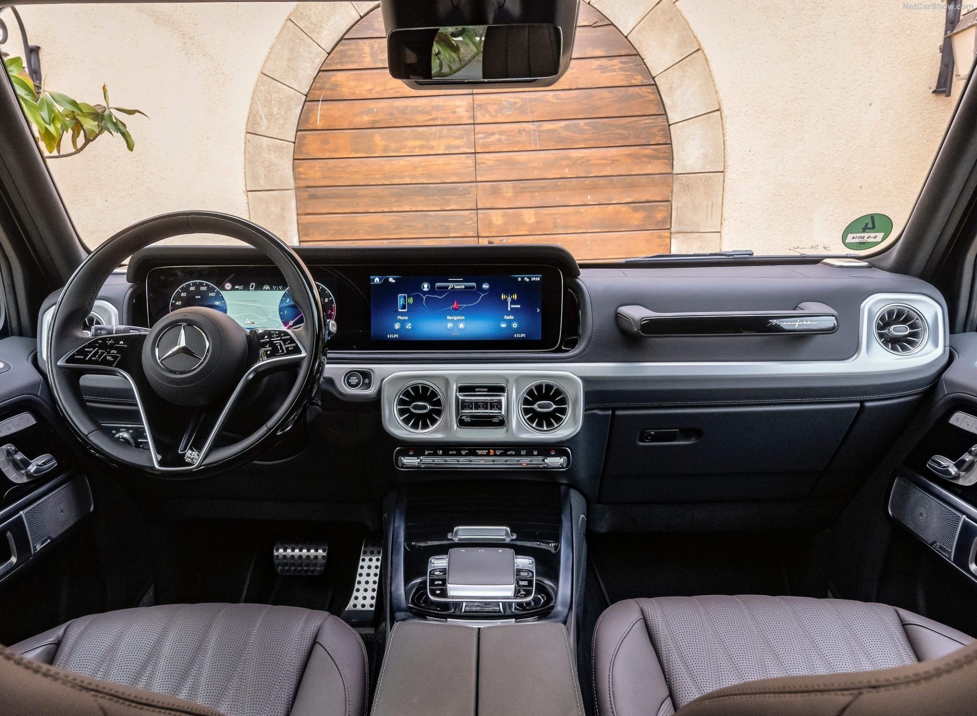 Khoang cabin của G 500 được cho là giữ nguyên bố cục so với G 63, với hệ thống màn hình kép 12,3 inch, đèn viền nội thất 64 màu, âm thanh Burmester, điều hòa ba vùng và cửa sổ trời toàn cảnh. Tuy nhiên, thay vì ốp sợi carbon thể thao, bản G 500 sẽ chuyển sang ốp gỗ hoặc kim loại sáng, phù hợp phong cách sang trọng cổ điển.