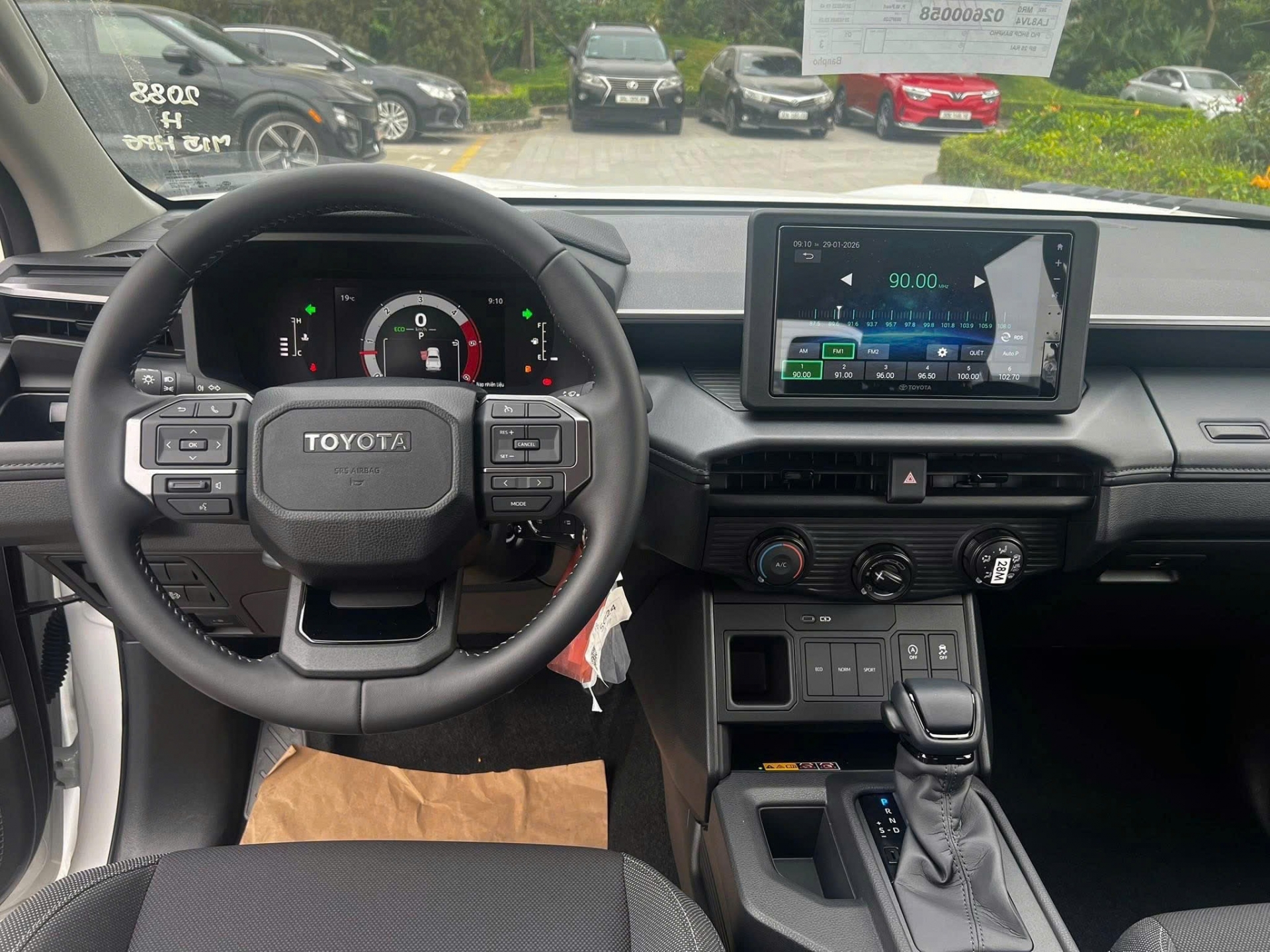 Ở bản Standard, khoang nội thất của Hilux 2026 được thiết kế theo hướng đơn giản và thực dụng. Xe sử dụng cụm đồng hồ analog, vô-lăng 3 chấu bọc urethane chỉnh tay 2 hướng và gương chiếu hậu trong có hai chế độ ngày/đêm.